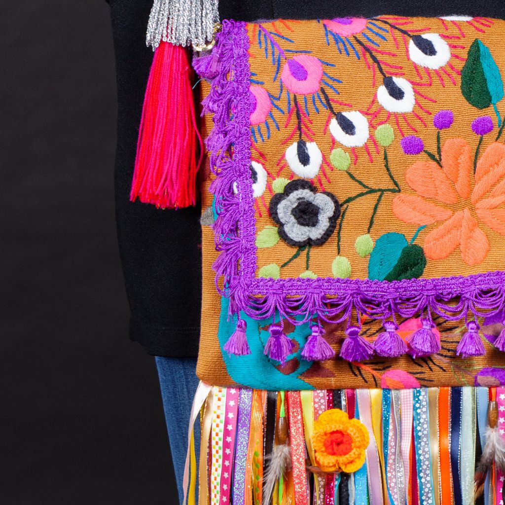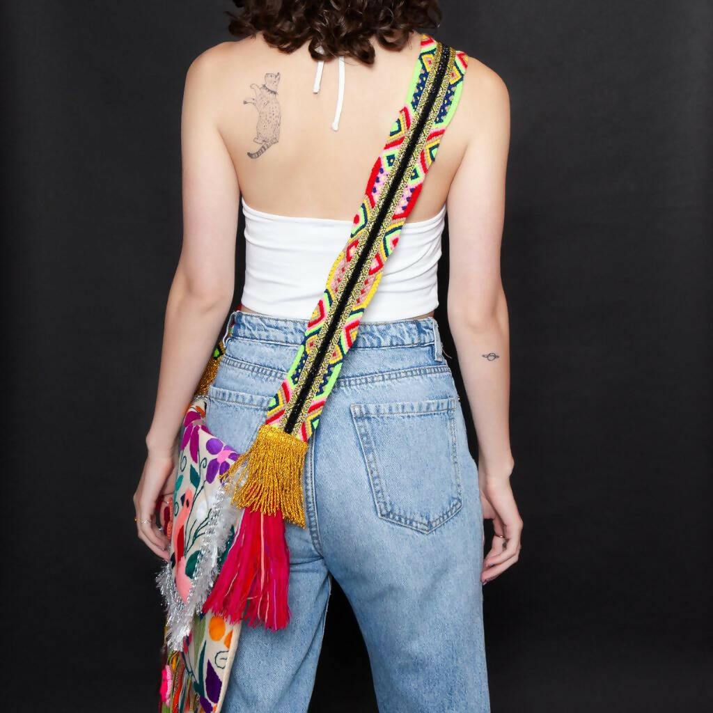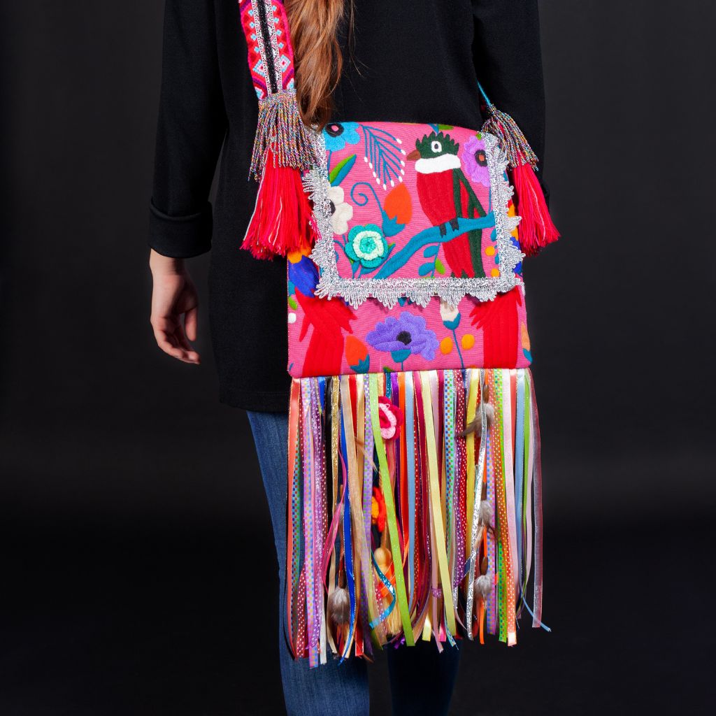 The funkiest statement piece of the funky familia. Its wide space will help carry all of your belongings in a cool-boho way. Each collection features different handmade telares from all over Mexico, always made by women. Includes an attached strap which cannot be adjusted or removed. Care: clean with a wet wipe