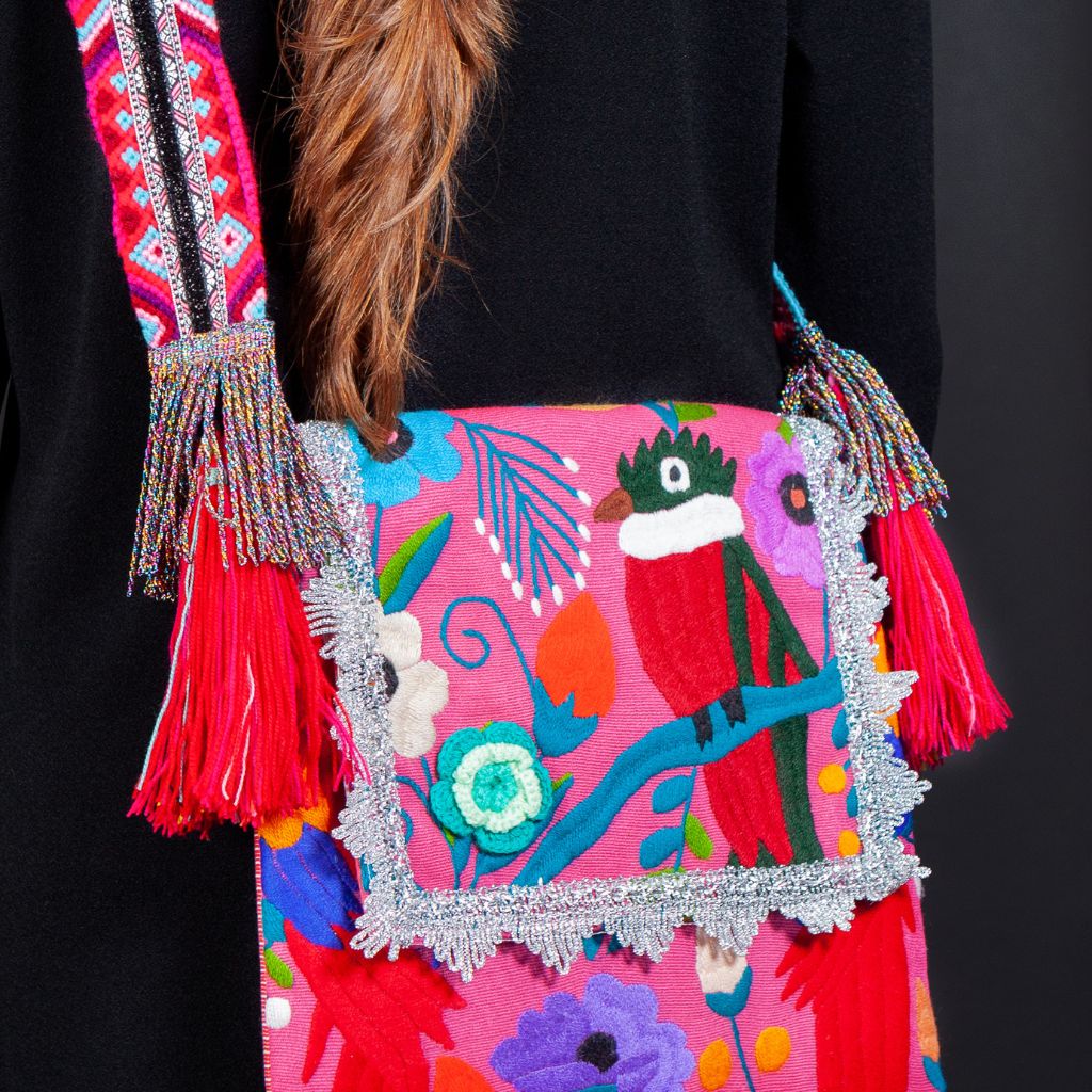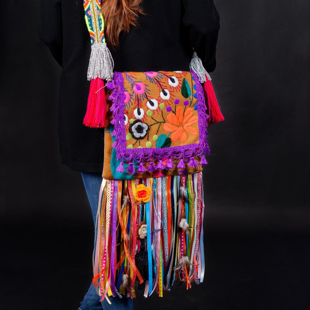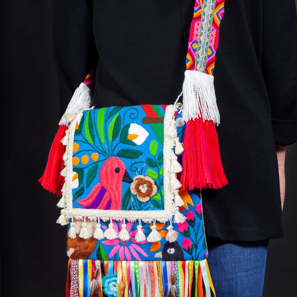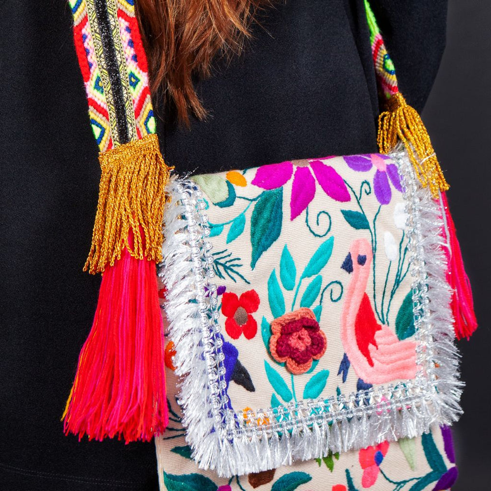 The funkiest statement piece of the funky familia. Its wide space will help carry all of your belongings in a cool-boho way. Each collection features different handmade telares from all over Mexico, always made by women. Includes an attached strap which cannot be adjusted or removed. Care: clean with a wet wipe
